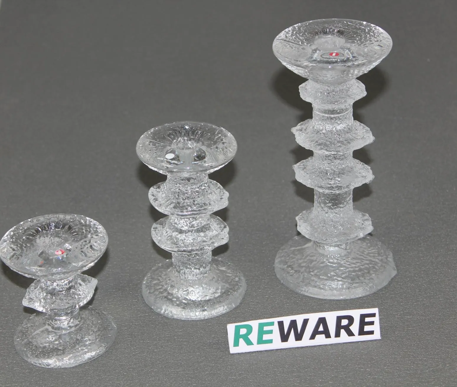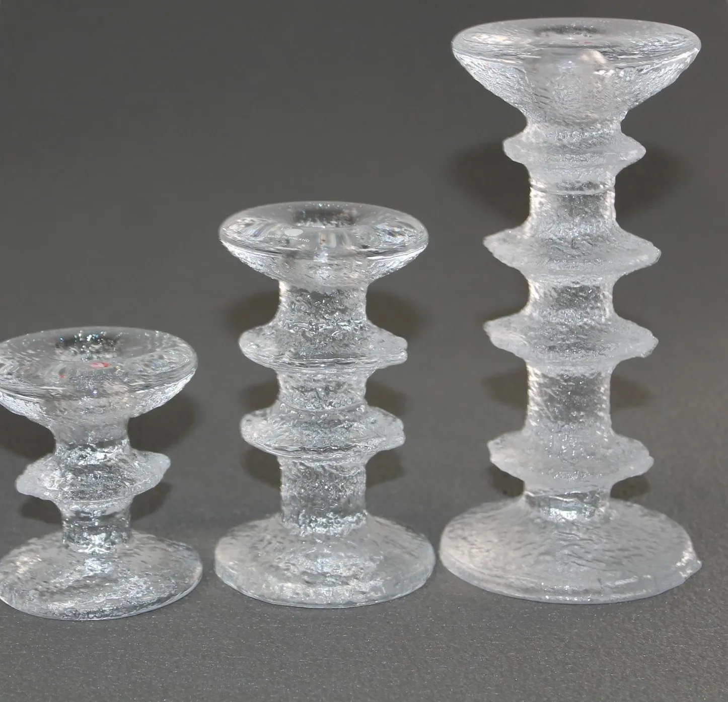 Festivo kynttilänjalat. Timo Sarpaneva. 1-solmu, 2-solmu ja 4 solmuinen. Tarrat ja signeeraukset kaikissa.