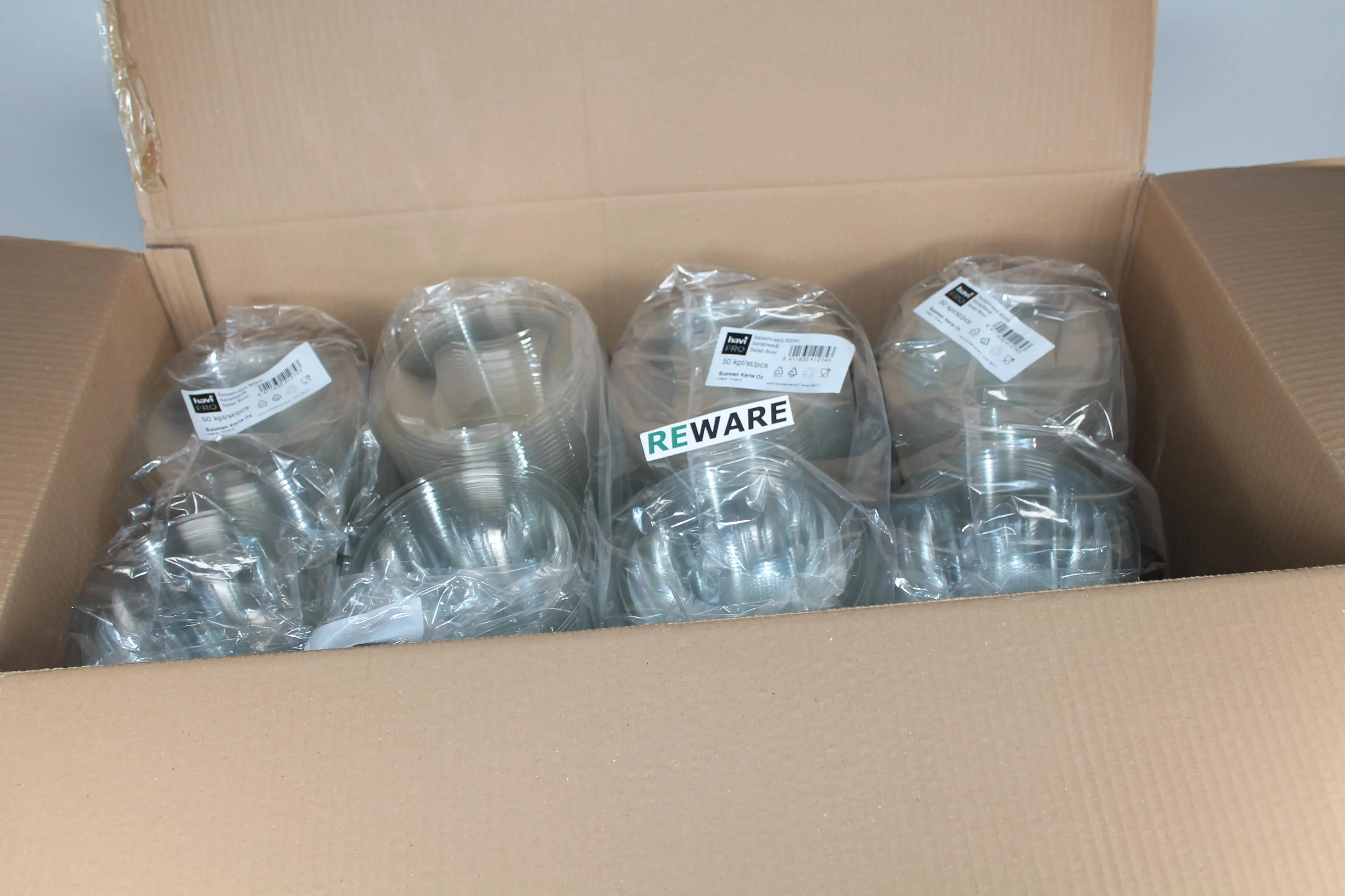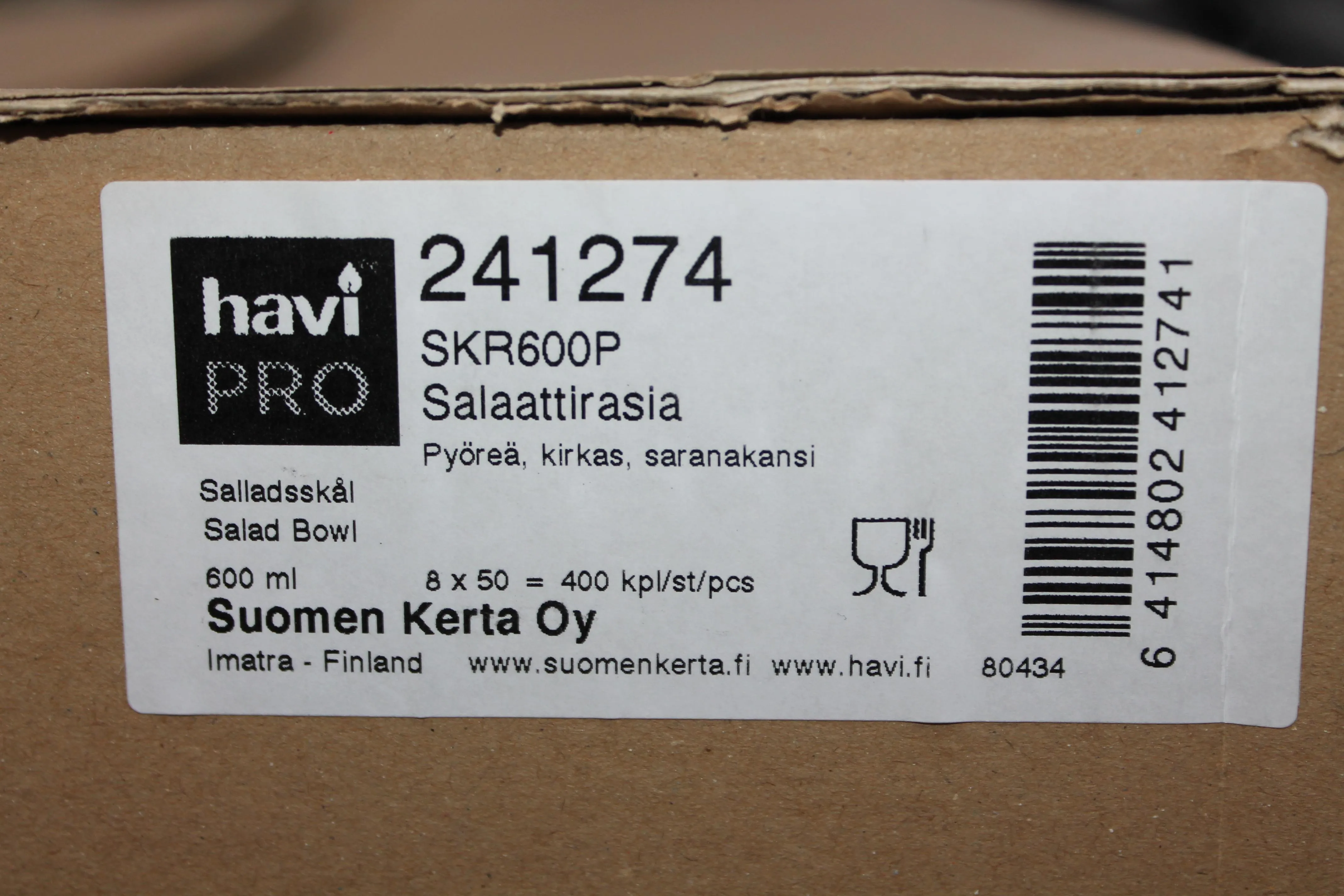 Havi Pro salaattirasia 600 ml, pyöreä, kirkas, saranakansi. 400 kpl. Uusia laatikossa.