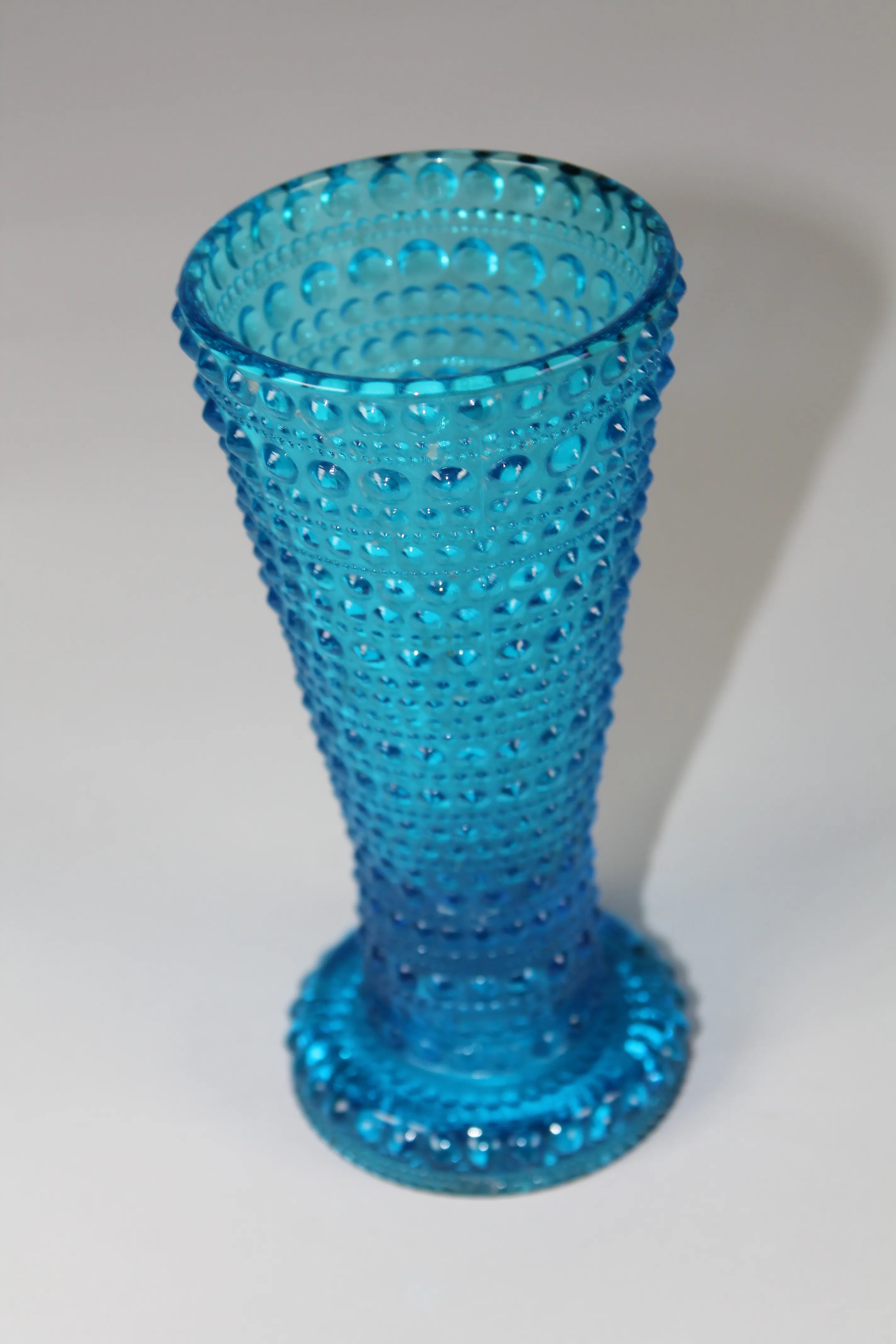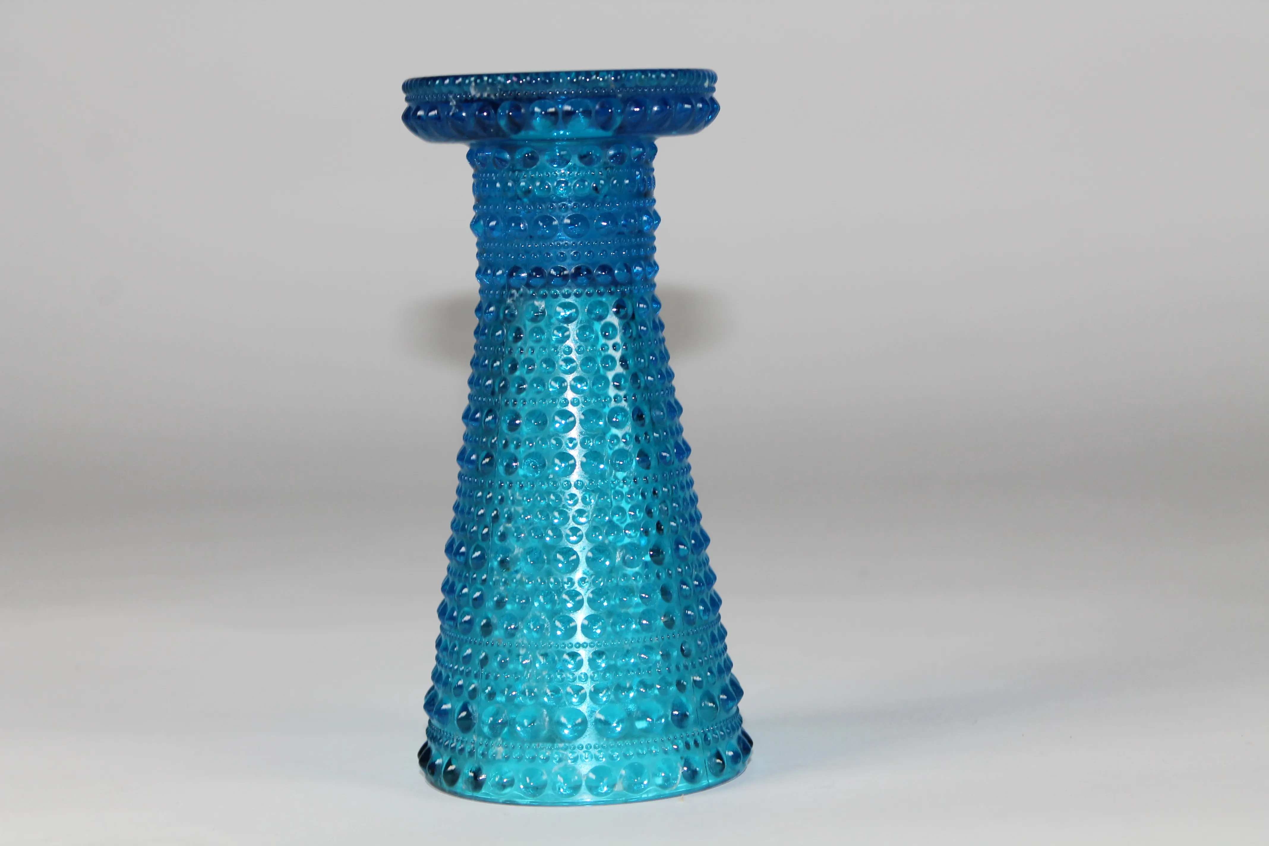 Kastehelmi kääntömaljakko. Nuutajärvi,  Oiva Toikka. Sininen, korkeus 15,5 cm.