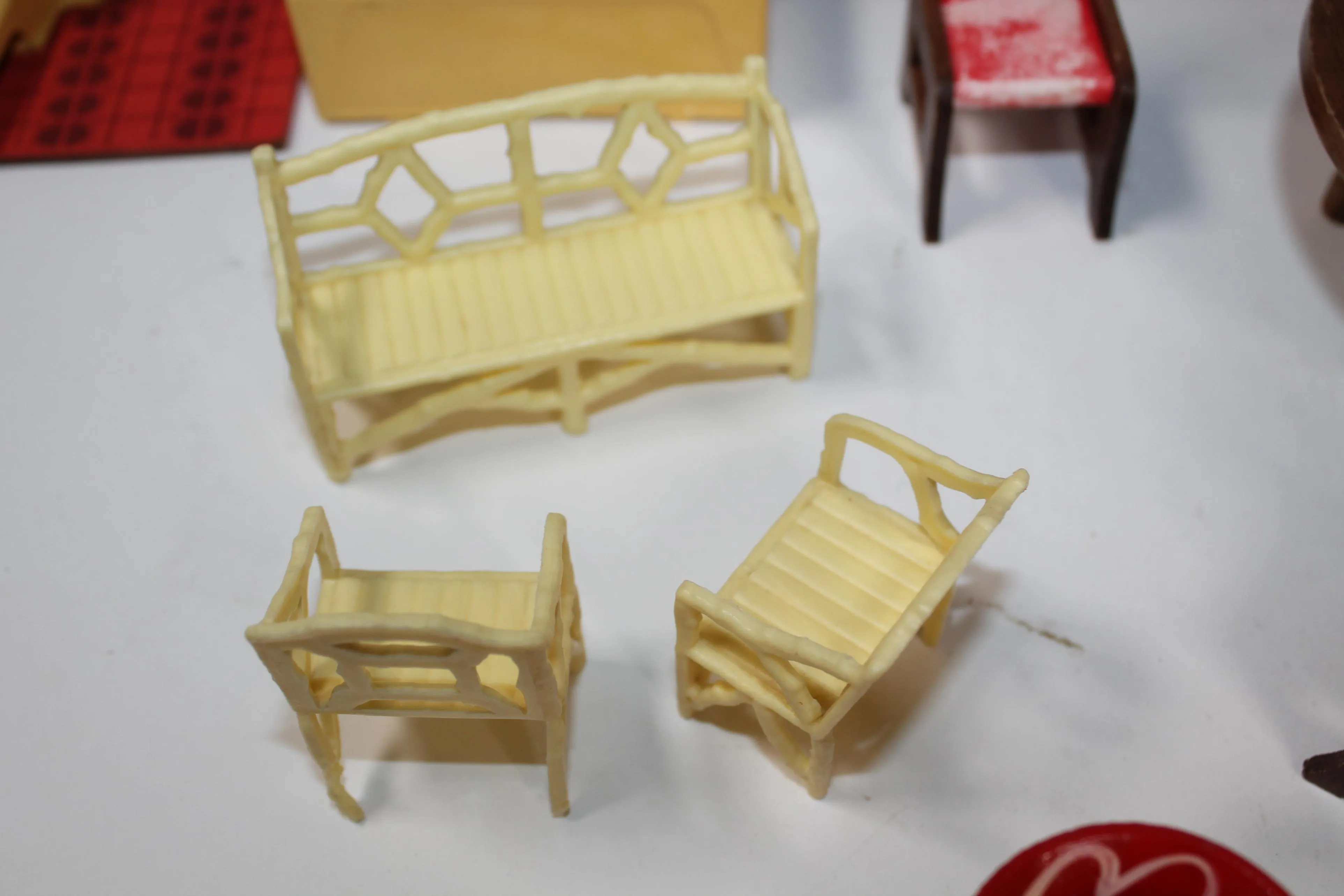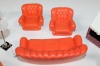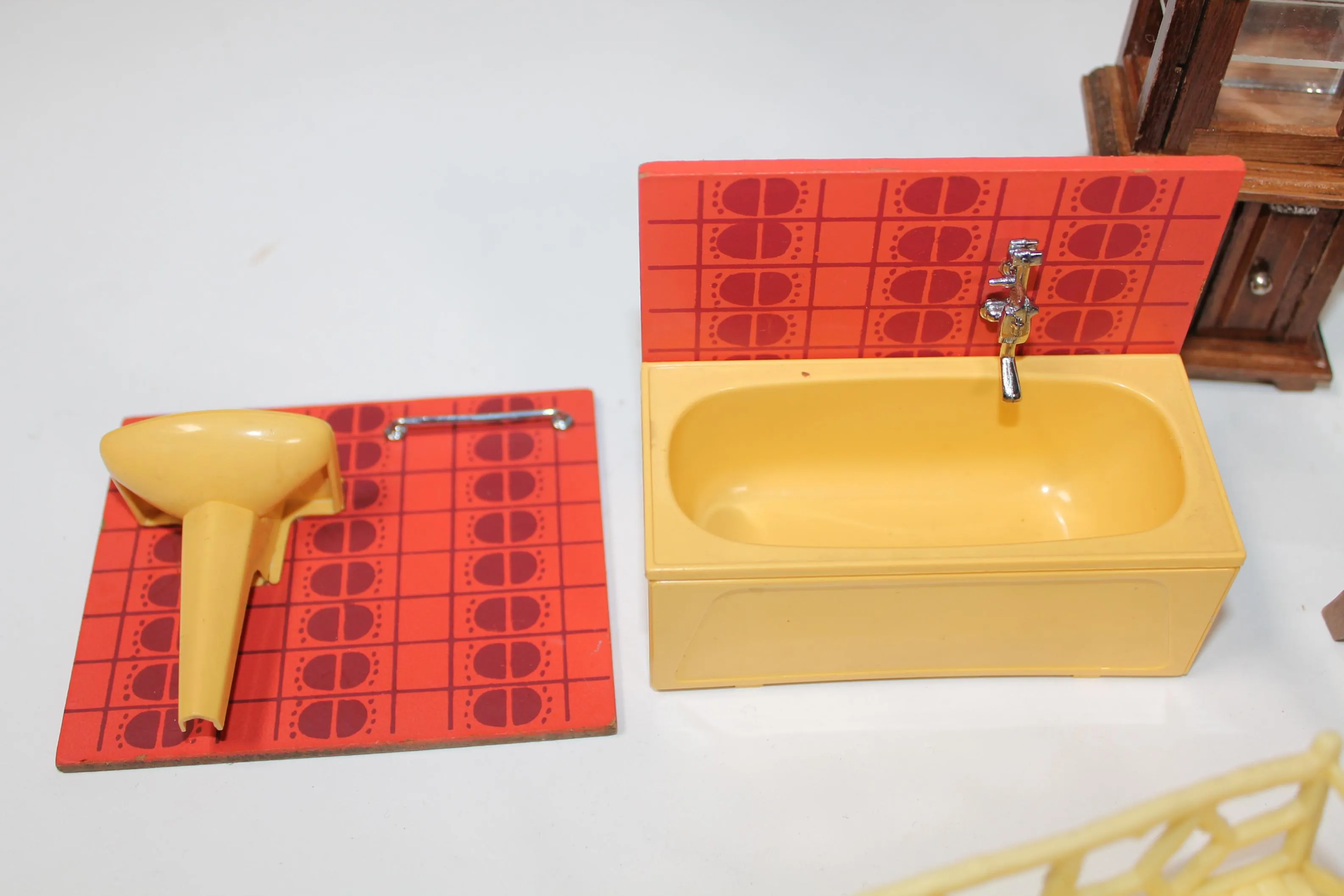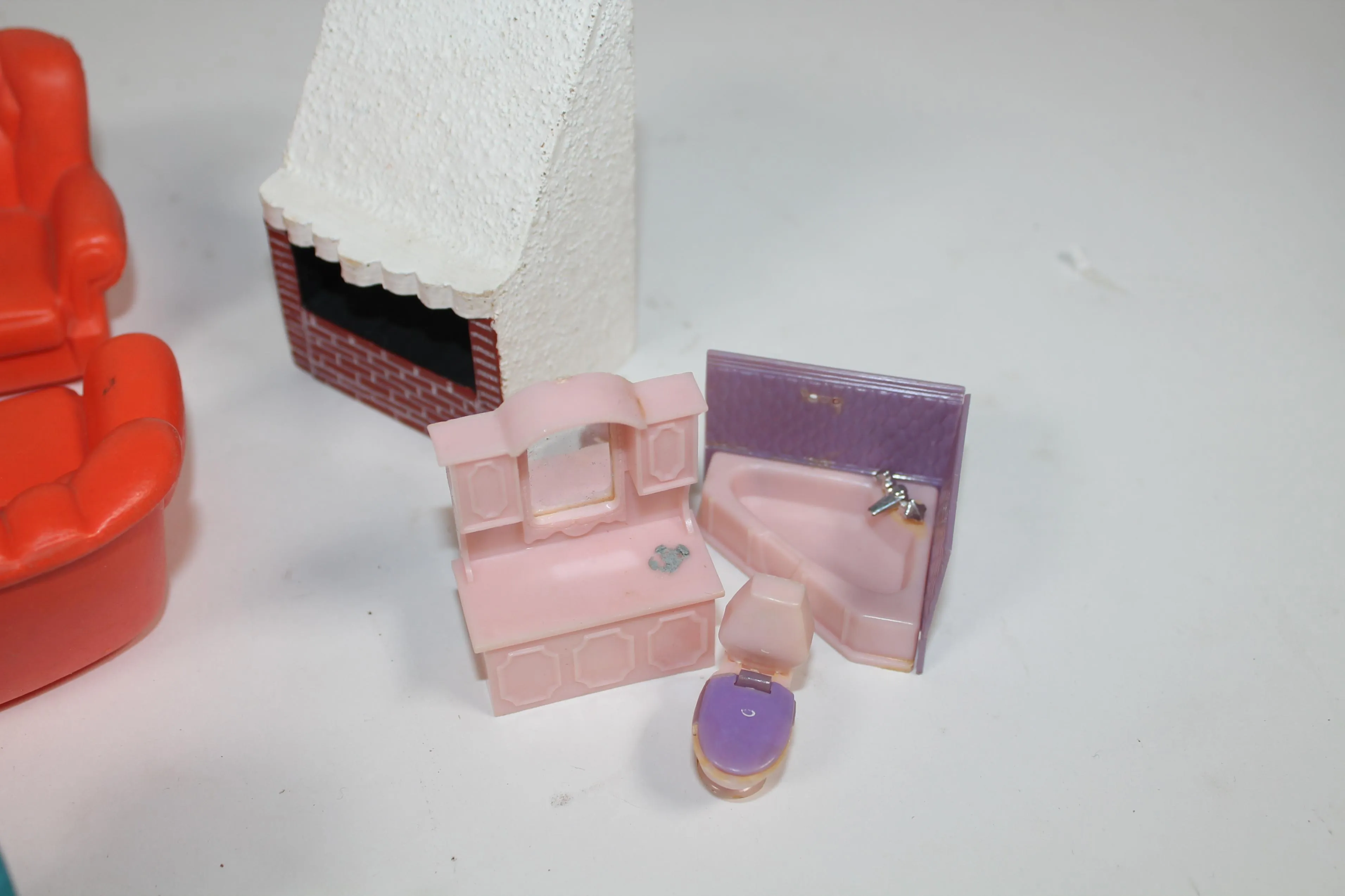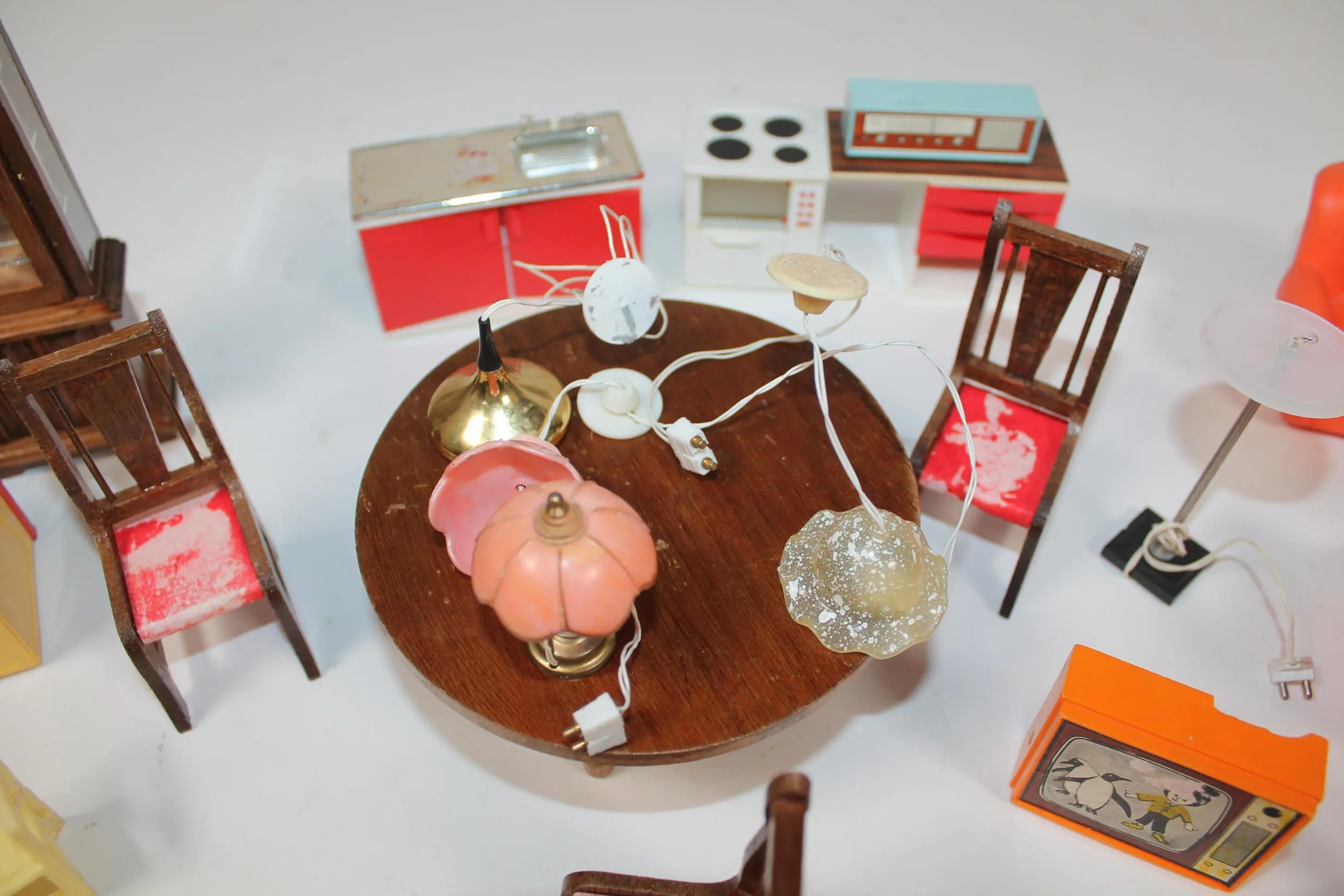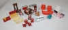 Retrot nukkekodin kalusteet. Puu ja muovi.