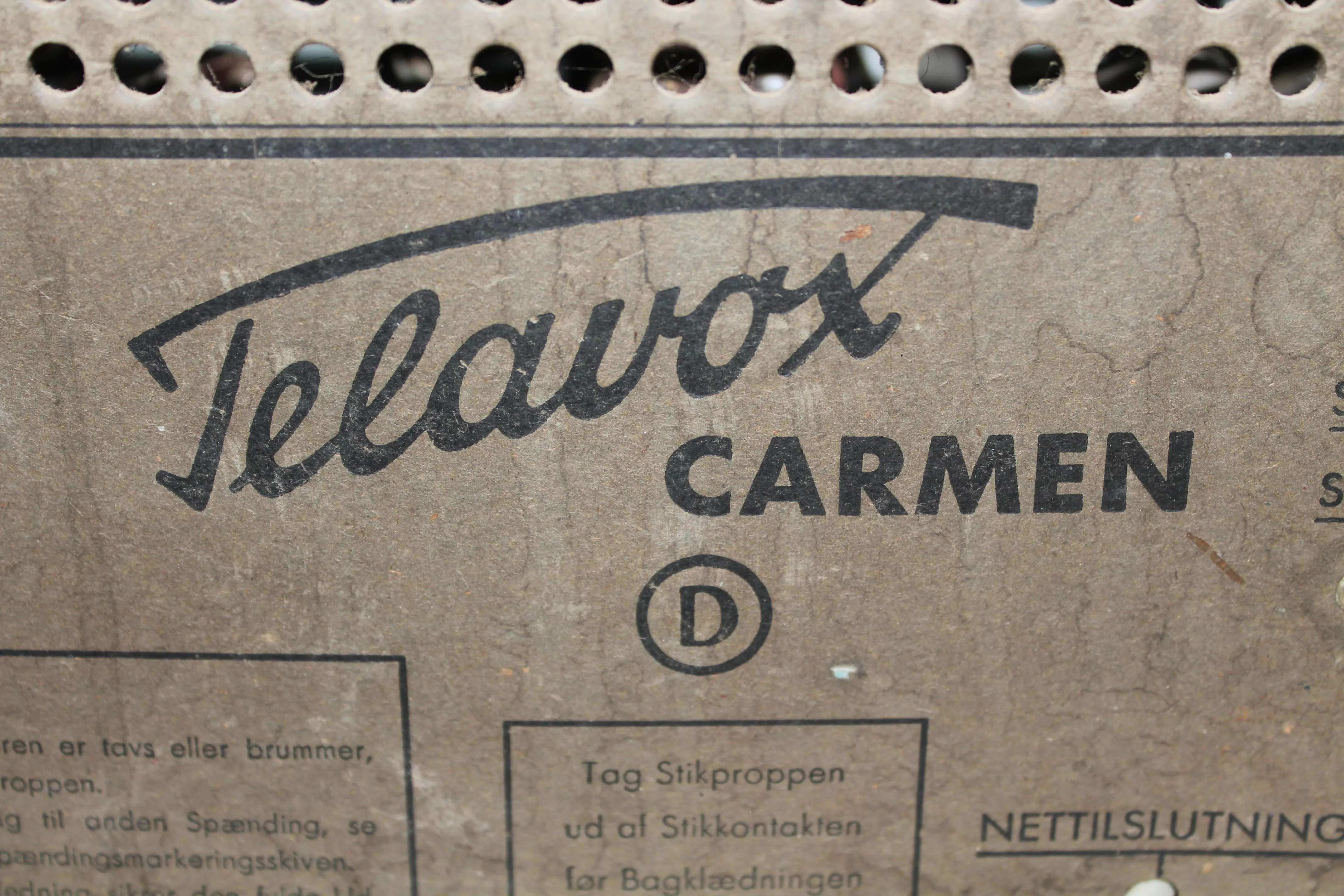 Telavox Carmen radio. 1950-luku Tanska. Toimivuutta ei ole testattu.